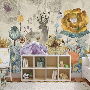 Tapeten Wandbild Hintergrundbild Fototapetebenutzerdefinierte Vintage Blumen Und Elch Hirsche Entwerfen Wandgemalde An Der Wand Fur Wohnzimmer Sofa Hintergrund Wandpapier Wandbild 300 210cm Amazon De Baumarkt