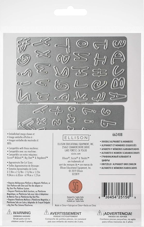 Amazon Com Sizzix Doodle Alphabet Numbers By Sophie Guilar Dies Multicolor