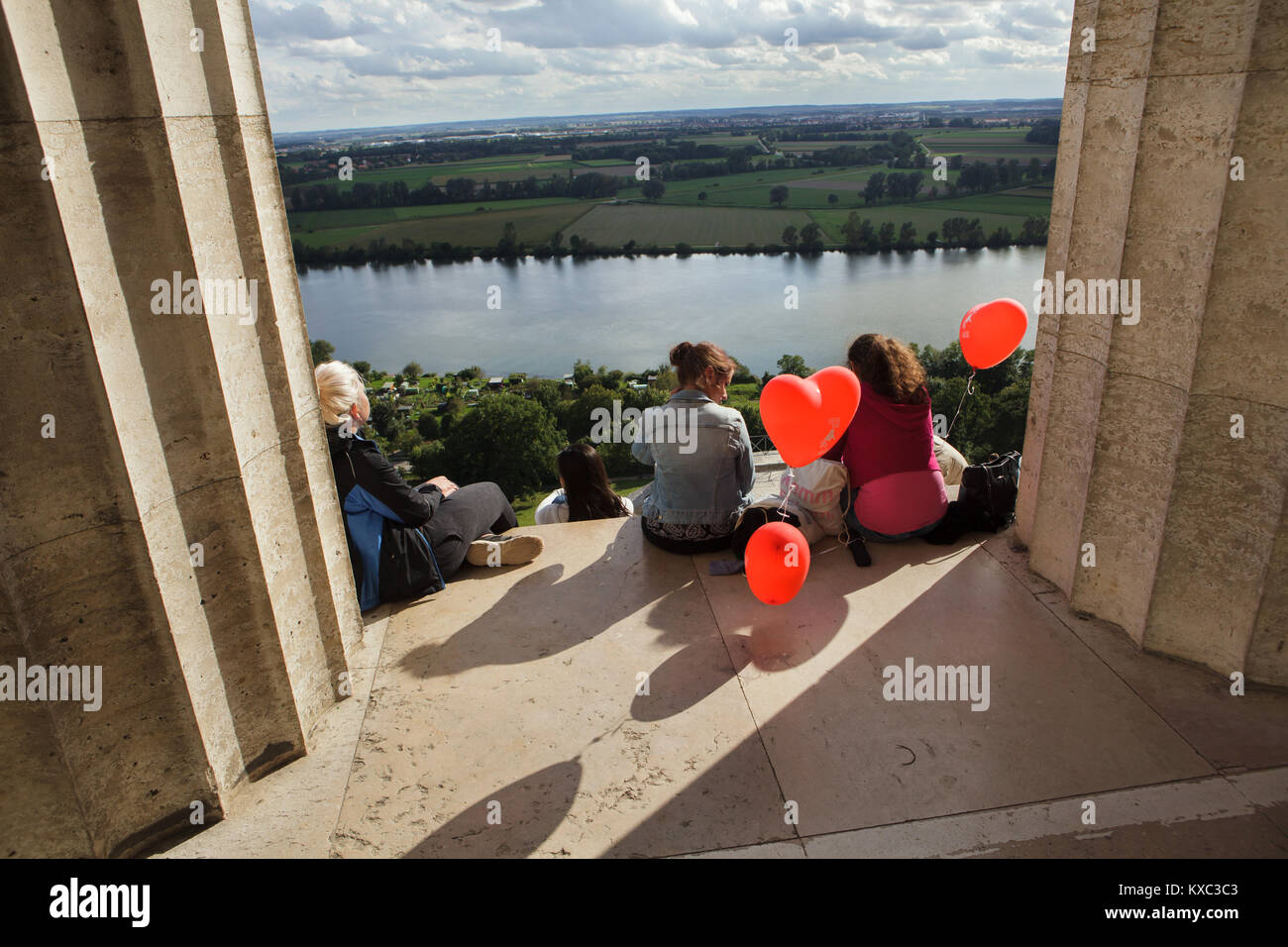 Menschen Geniessen Sie Die Aussicht Auf Die Donau Sitzen Neben Der Gedenkstatte Walhalla Bei Regensburg In Bayern Deutschland Stockfotografie Alamy