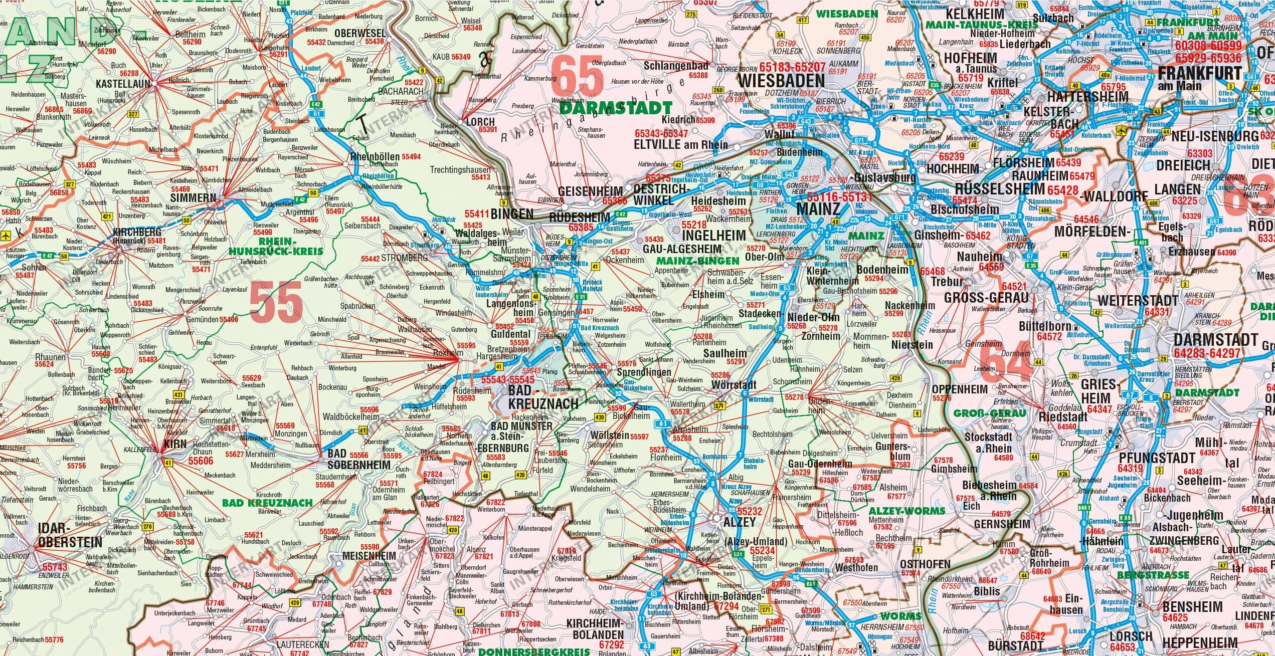 Postleitzahlenkarte Rheinland Pfalz Saarland 98 X 130cm