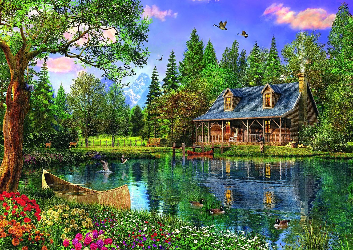 Puzzle Dominic Davison Crystal Lake Cabin Trefl 45005 4000 Teile Puzzle Cottages Und Chalets Planet Puzzles