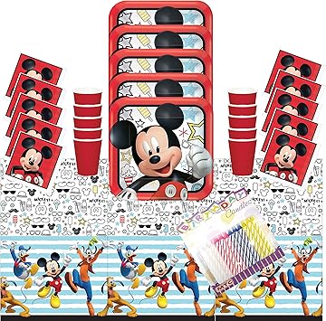 Disney Mickey On The Go Partyteller Servietten Becher Und Tischdecke Fur 16 Personen Mit Geburtstagskerzen Disney Mickey Mouse Party Supplies Back Deluxe Bundle Fur 16 Amazon De Spielzeug