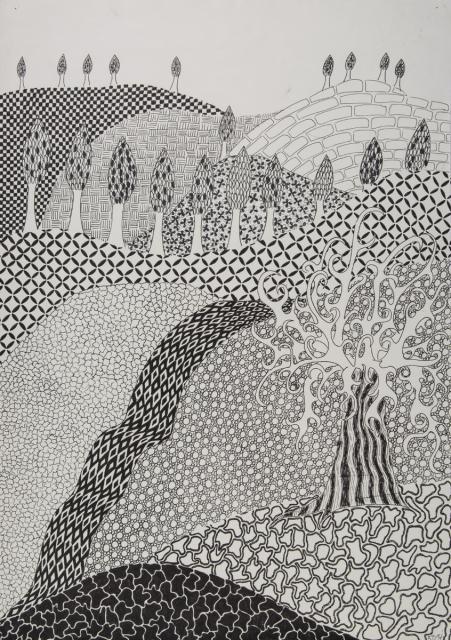 Grafik Gegenstandliche Zeichnung Tusche Und Einfarbige Filz Und Holzstiftzeichnungen Landschaft Und Pflanzen Landschaft Von Oben Schulkunst Archiv Baden Wurttemberg